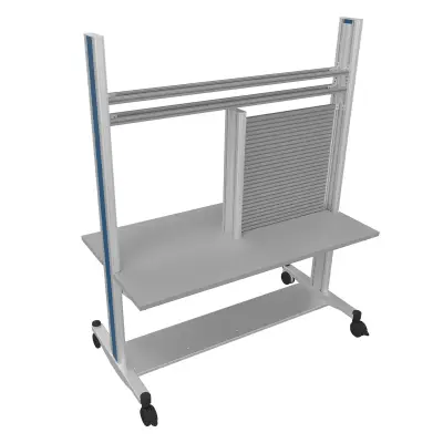 Das stabile Gestell ist aus robustem Aluminium-Strangpressprofil gefertigt. Das Profil hat auf jeder Seite zwei Nuten und zwei getrennte Kabelkanäle