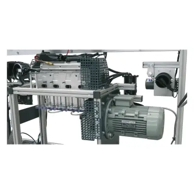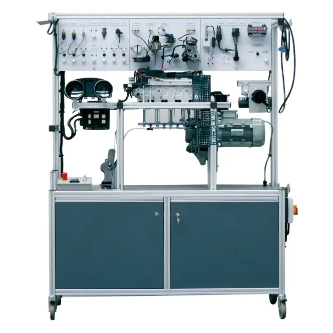 Der Schulungsstand Common-Rail-Einspritzsystem mit Magnetventilinjektoren wurde mit Originalbauteilen des Golf 2.0 TDI erstellt. Besonderer Wert wurde bei der Konzeption auf den möglichst realitätsnahen Aufbau der Komponenten und ihrer Verbindungen gelegt. Somit können Messungen zur Bauteil- und Systemdiagnose unter realen Bedingungen durchgeführt werden.