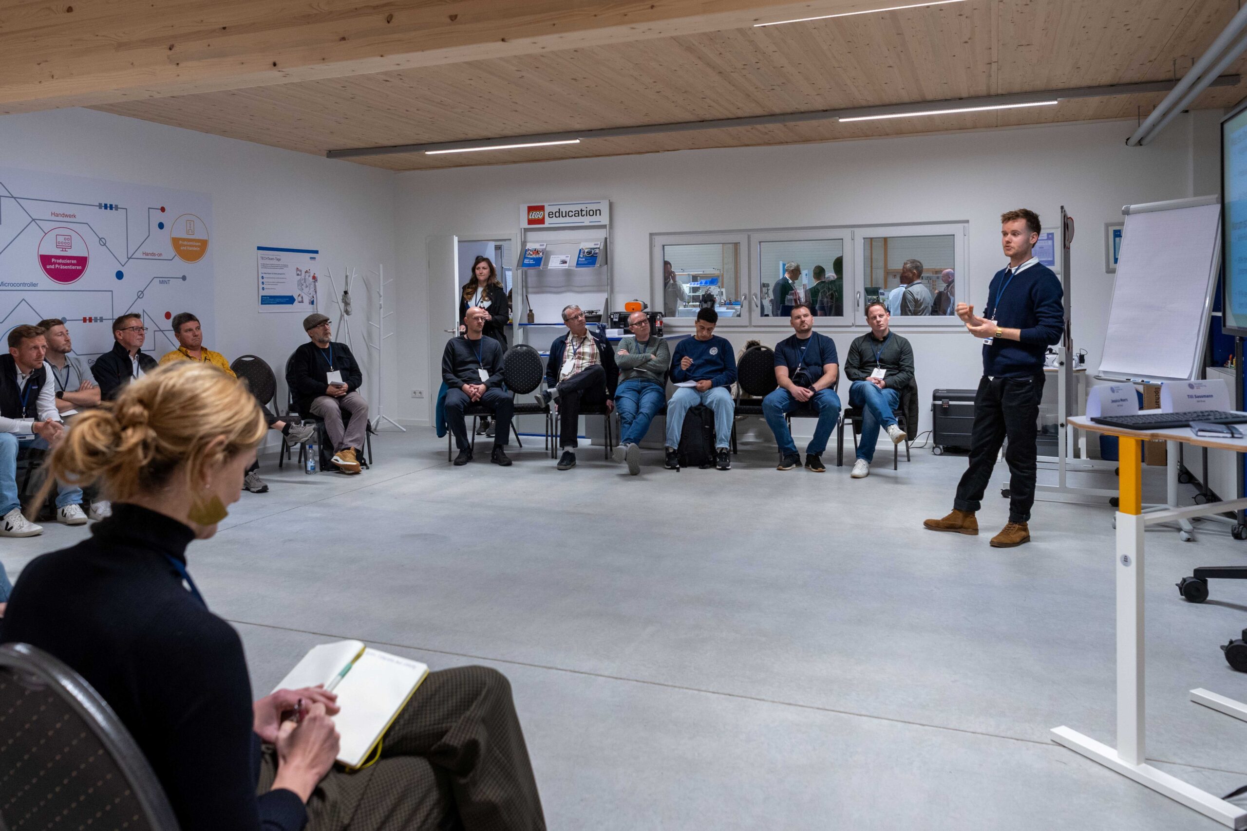 Ein Beispiel einer „Lernfabrik der Zukunft“ präsentierte Michael Bronner von fischertechnik. Die vorgestellte Anlage simuliert fortschrittliche, fluide Produktionsprozesse und kann mit Hilfe eines Digitalen Zwillings auch virtuell betrieben werden. Von den breiten Anwendungsmöglichkeiten, die von der Ausbildung über Produktion und Logistik bis zur Forschung reichen, konnten sich die Teilnehmenden vor Ort überzeugen.