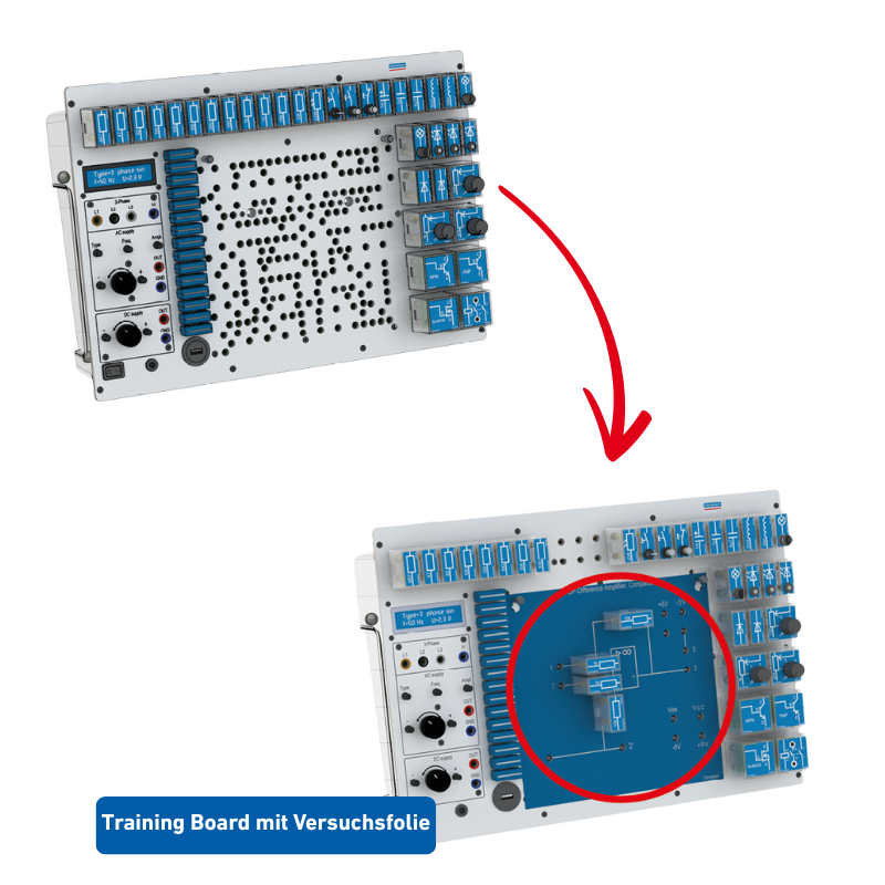 Mit den Versuchsfolien können 63 vorgefertigte Aufgabenstellungen zu verschiedenen Themen bearbeitet werden. Die Versuche sind vorverdrahtet und betriebssicher.