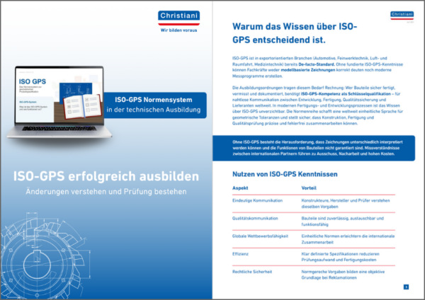 Das Christiani-Produktportfolio zum neuen ISO-GPS-Normensystem bietet eine breite Auswahl an digitalen und analogen Lehrmitteln – speziell für Auszubildende und Ausbildende. Ziel ist es, das Verständnis für ISO-GPS zu fördern und Zeichnungen sicher lesen und interpretieren zu können.